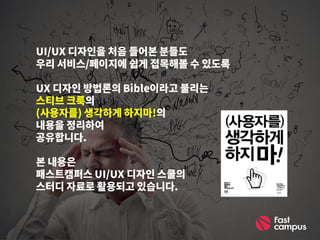 당장 능력 있는 UI/UX 디자이너를 채용할 여력이 없다고 수많은 잠재 고객들을 포기하겠습니까? 이름만 많이 들어봤지 도통 모르겠는 UI/UX 디자인, 기본부터 알아봅시다. 협업에서 필요로 하는 모든 UI/UX 디자인 역량을 완성하는 [UI/UX 디자인 스쿨] http://www.fastcampus.co.kr/dgn_school_uds/