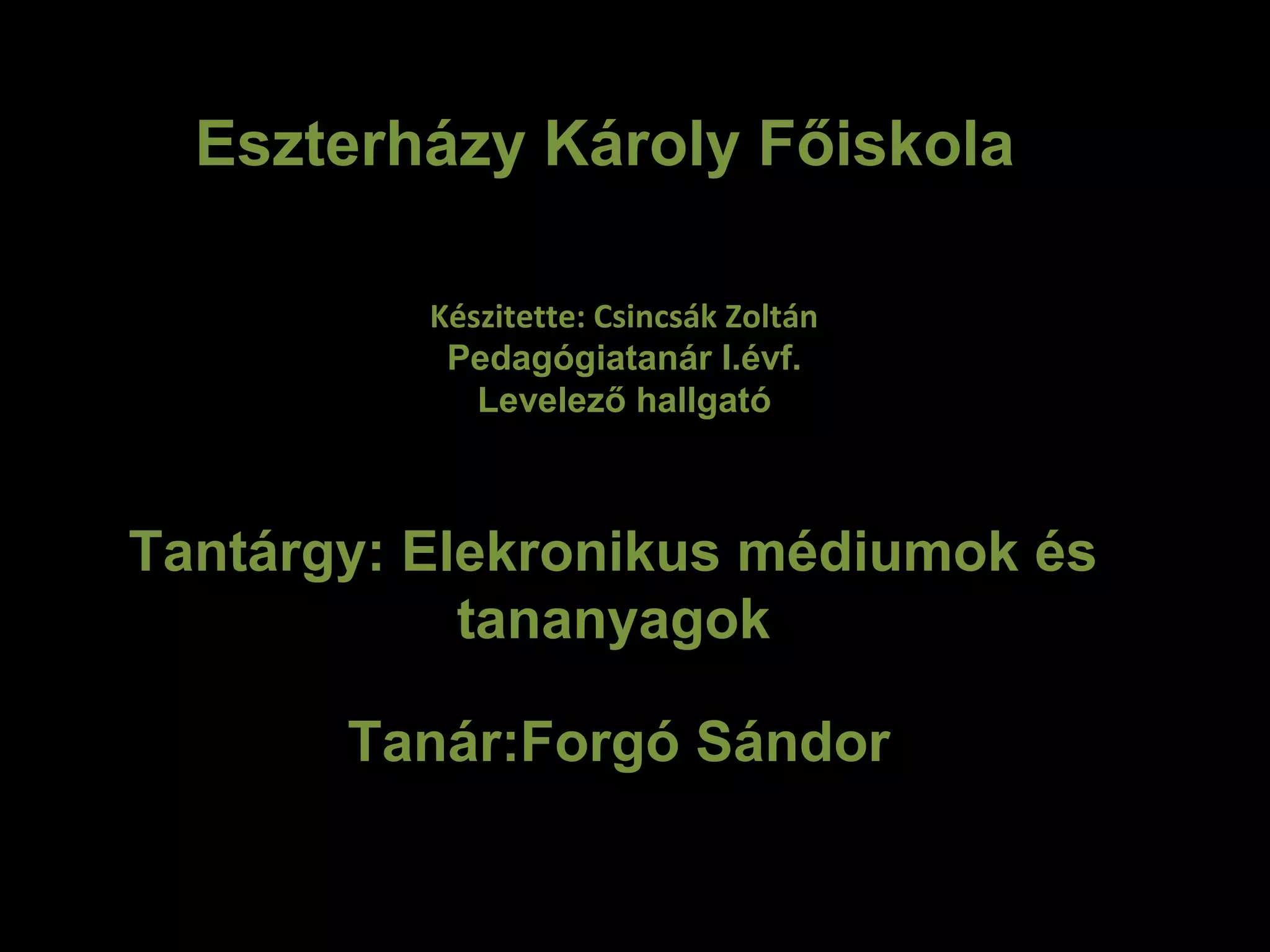 Tantárgy: Elekronikus médiumokés