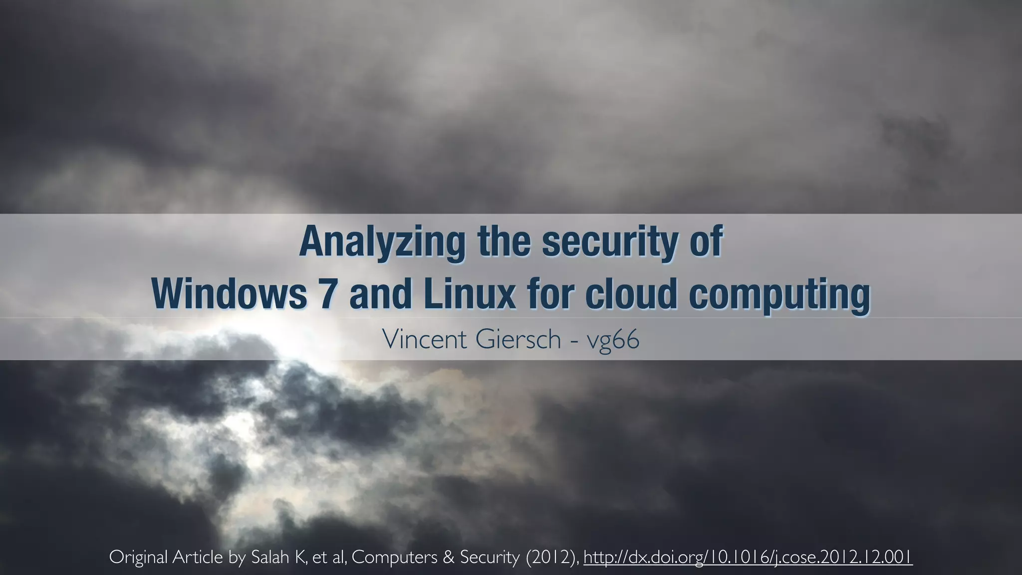The article analyzes the security measures of Windows 7 and Linux in cloud computing, focusing on aspects such as authentication, authorization, network security, privacy, and encryption. It emphasizes the importance of using personal OS images and externalizing identity management and logs for enhanced security. The authors criticize current practices and suggest improvements, highlighting the need for robust security measures in Infrastructure as a Service (IaaS) environments.