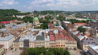 This document provides a brief overview of notable landmarks and areas in several Ukrainian cities, including the Pecherska-Lavra Monastery and St. Sophia Cathedral in Kyiv, Market Square in Lviv, and the City Center, Odesa Passage, and Potemkin Steps in Odesa.