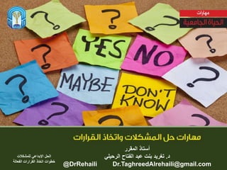 تناقش الوثيقة تأثير أساليب اتخاذ القرارات في حل المشكلات المختلفة، وتستعرض تقنيات تحديد المشاكل وتحليلها. تشمل الوثيقة أيضًا أنواعًا من المشاكل وتقنيات التفكير الإبداعي في اتخاذ القرارات. كما تبرز أهمية اتخاذ القرار بوعي لتحقيق الأهداف المرجوة.