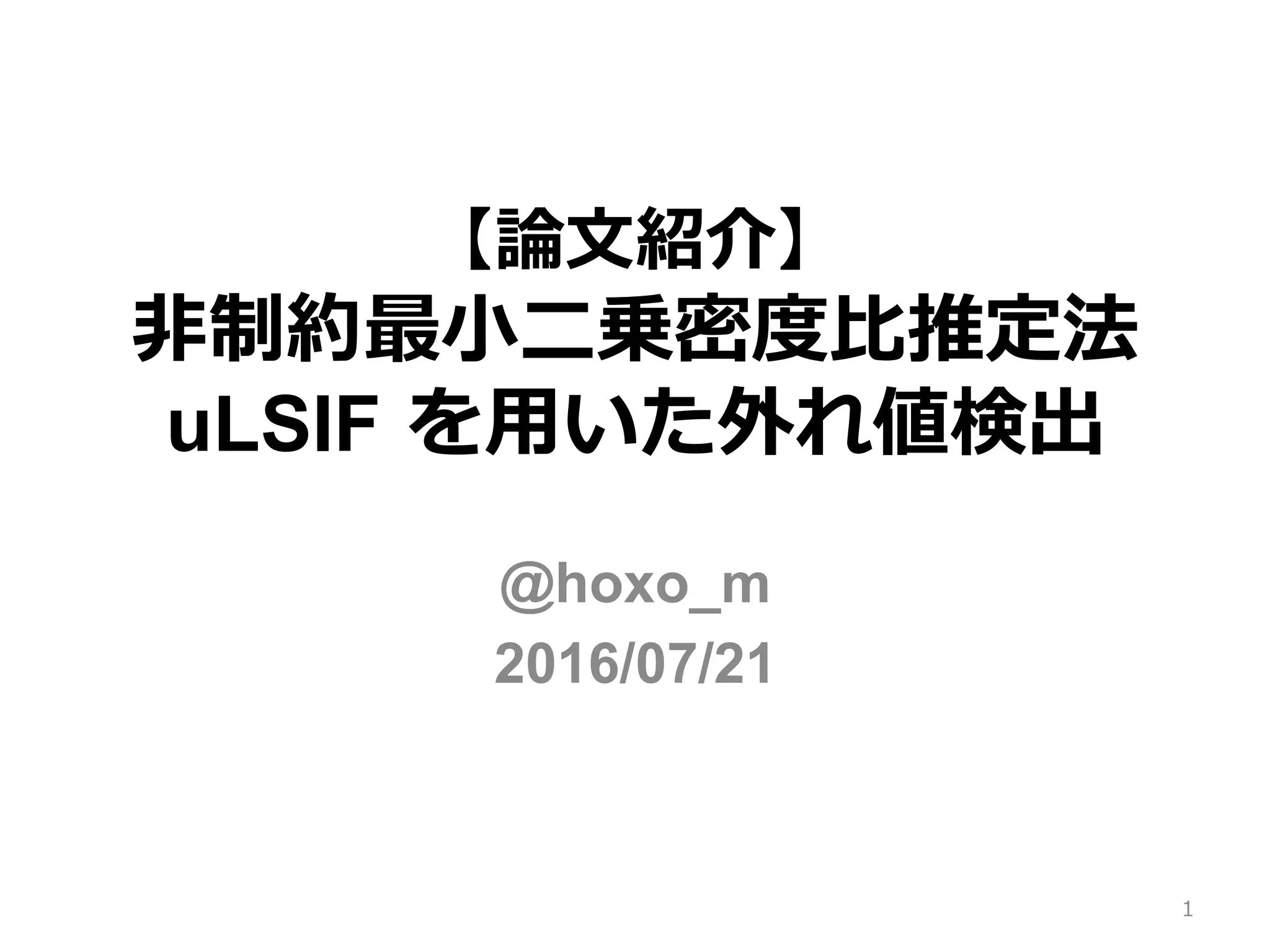 非制約最小二乗密度比推定法 uLSIF を用いた外れ値検出