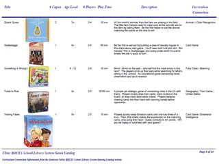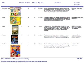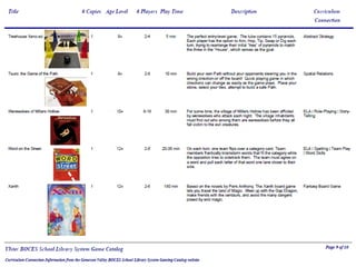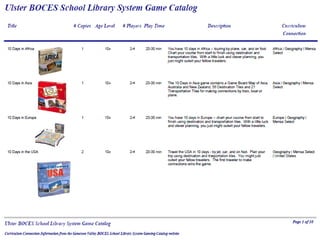 The Ulster BOCES Library System offers educational board games to schools. For more details on the board games, contact Linda Fredricks at the phone number or email provided. The board games are intended to supplement learning in schools.