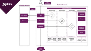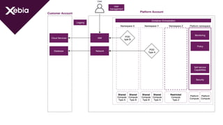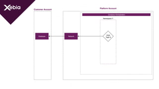 The document outlines a self-service platform built on Kubernetes principles, emphasizing management, reusability, and minimal restrictions. It discusses integration with AWS services, including options for VPC and IAM access, while addressing key aspects such as security, multitenancy, monitoring, and application exposure. The focus is on providing a native platform interface that empowers teams to manage their applications effectively.