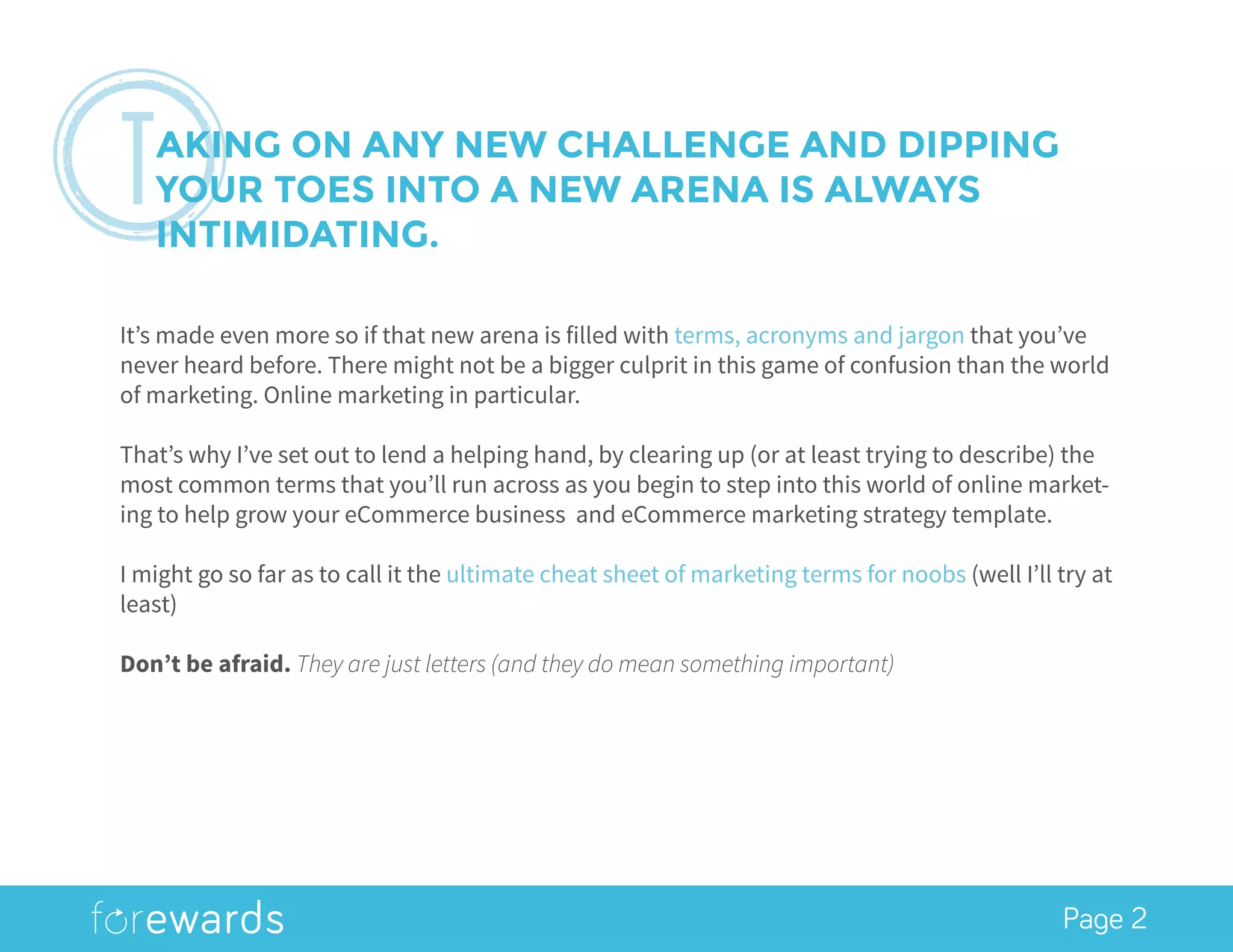 The document is a comprehensive glossary of digital marketing terms aimed at beginners exploring e-commerce and online marketing. It defines various key terms, acronyms, and concepts such as AOV, API, SEO, and more, while emphasizing their relevance and application in marketing strategies. This ultimate cheat sheet aims to demystify common jargon and support new marketers in navigating the complexities of the digital marketing landscape.