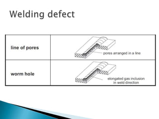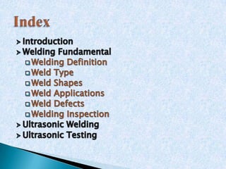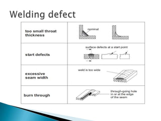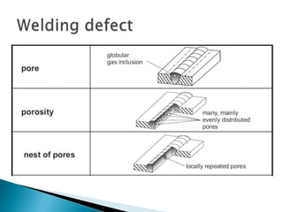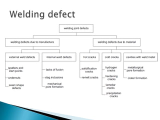 The document provides an extensive overview of various welding processes, their applications, advantages, limitations, and typical defects associated with them. It covers techniques such as electron beam welding, ultrasonic welding, and soldering, detailing their specific uses in industries like aerospace, automotive, and construction. Additionally, it highlights the importance of non-destructive testing methods for quality control in welds and addresses common welding defects and their causes.
