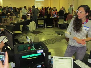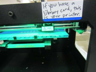 The document describes a Hyperspace Engage event at a public library focused on making and learning. It provides an agenda that includes theory, workshops, resources, and cake. The theory section discusses evidence-based learning and how making inspires creative thinking and teamwork. The philosophy is described as offering innovative making opportunities to kids and young adults in a trusted community institution like a library. The document outlines the library's HYPE Makerspace for teens, including various workshops on topics like bike repair, crafts, graphic design, sewing, electronics, and 3D printing. It discusses starting small with the makerspace, learning from other spaces, and using expert instructors. The future section discusses plans like 3D printer plastic recycling
