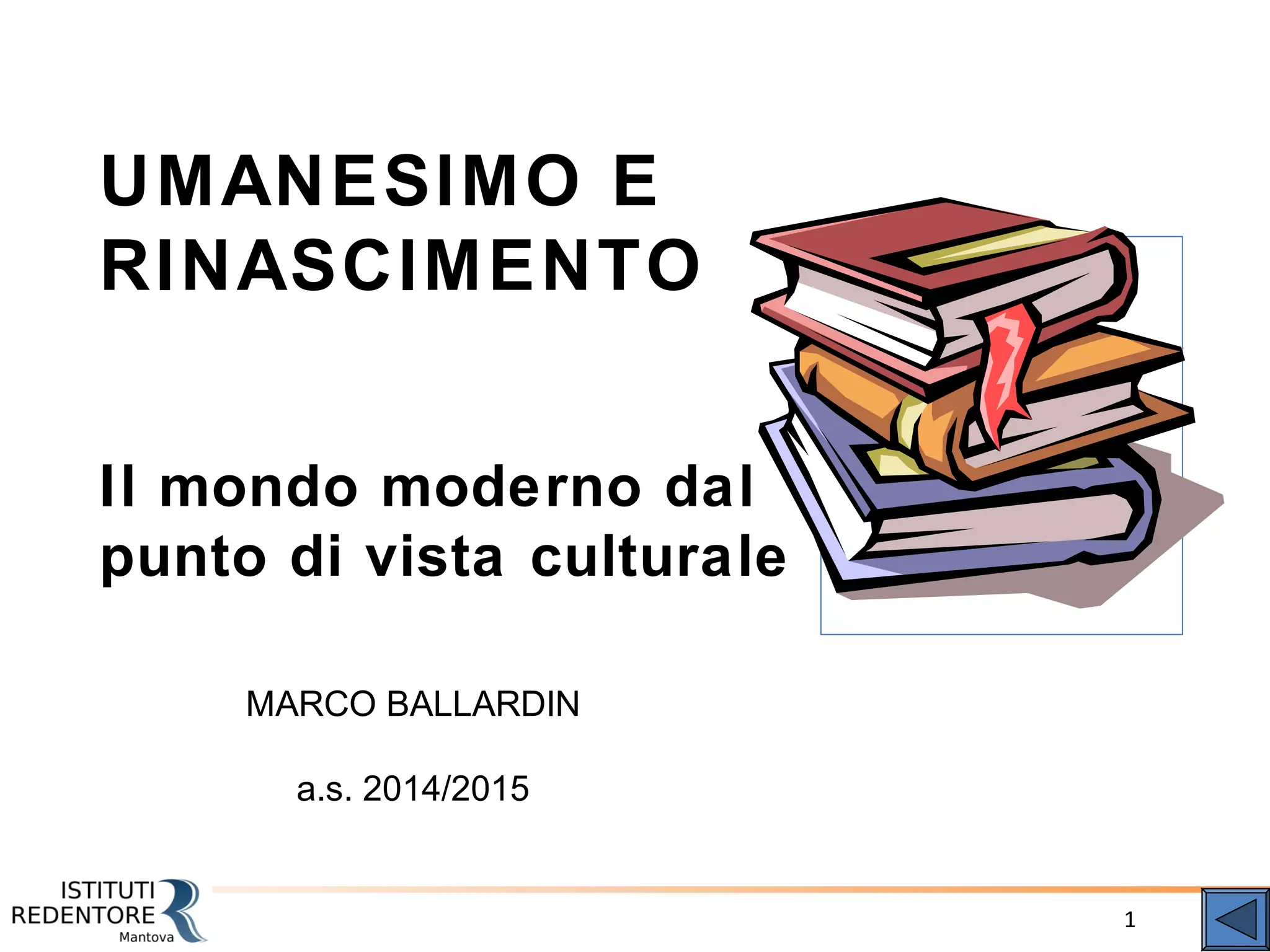 Il documento analizza la transizione culturale del periodo compreso tra la fine del Trecento e il Cinquecento, definita età umanistico-rinascimentale, che segna la centralità dell'uomo e della ragione. L'umanesimo enfatizza la dignità e la libertà umana, mentre il rinascimento si concentra sulle arti e la letteratura. Nonostante gli elementi di novità, il documento sottolinea la continuità con il medioevo, in particolare nel riferimento a Dio e nella sinergia tra fede e ragione.
