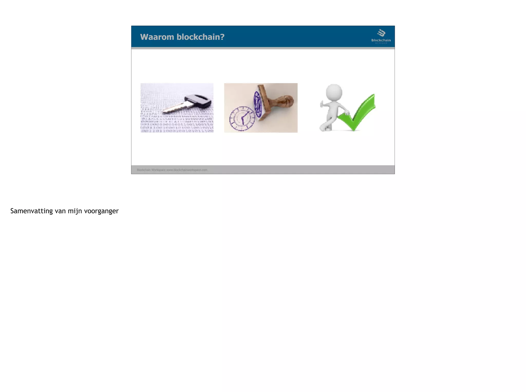 Als we iets op de blockchain zetten bedoelen we dus: we timestampen daar een fingerprint van gegevens, zodat we dat later kunnen verifiëren.