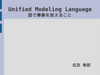 Unified Modeling Language 図で事象を捉えること ご静聴ありがとうございました 企画・製作 住友