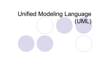 UML (Unified Modeling Language) is a standardized modeling language used to create visual representations of object-oriented software systems. It includes various diagram types to depict different views of a system, such as use case diagrams (user functionality), class diagrams (system structure), statechart diagrams (object states), sequence diagrams (object interactions), and activity diagrams (system workflows). UML provides a common language for discussing and designing software systems and standard visual symbols for expressing models.