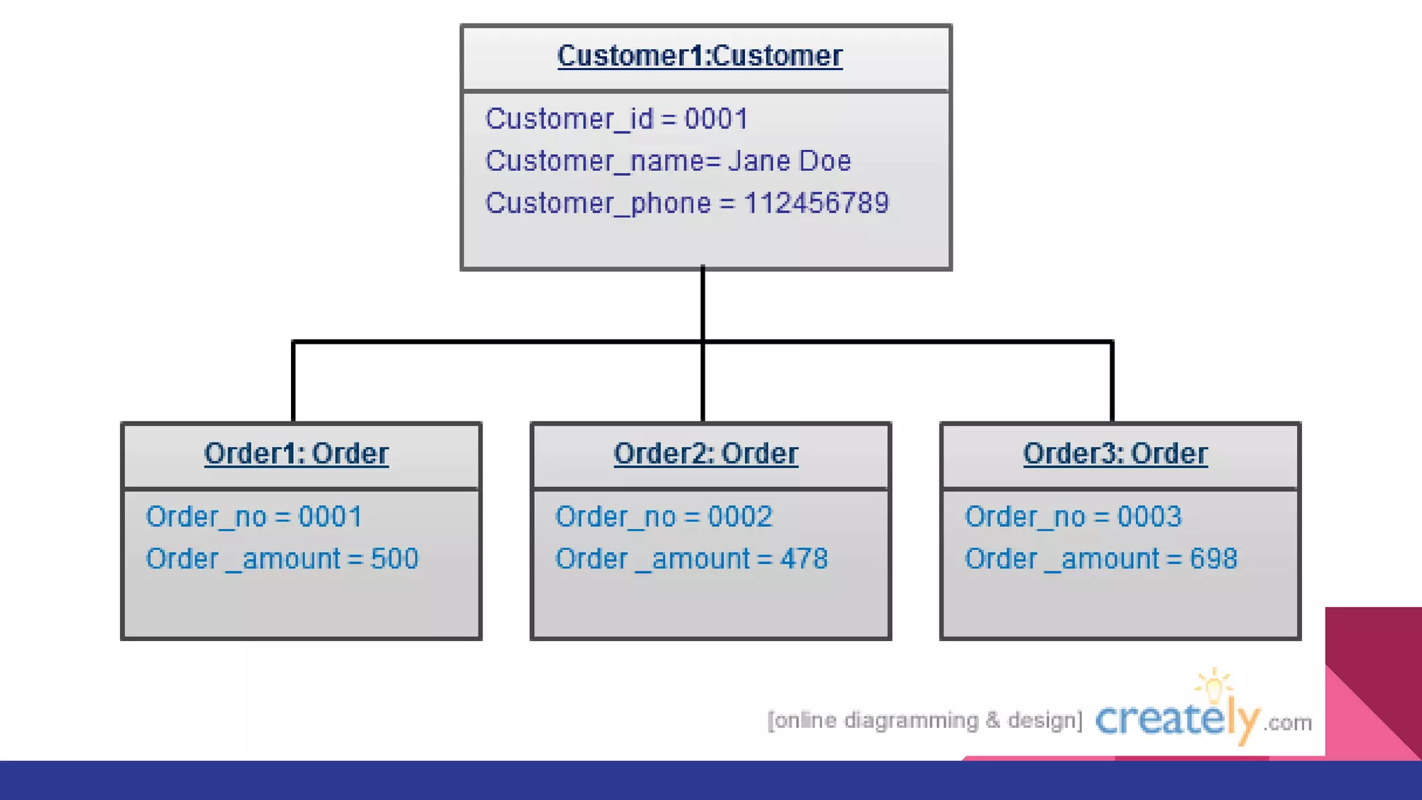 Object Diagrams,sometimes referred as Instance diagrams are very similar to