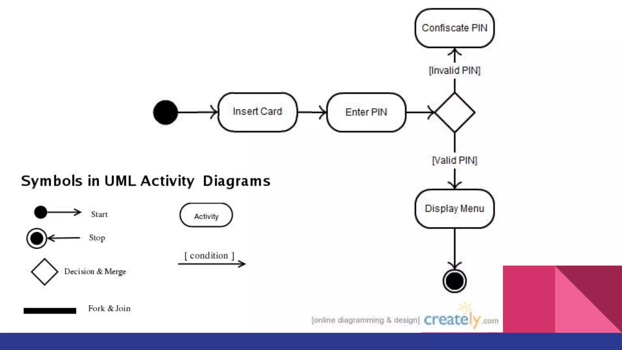 Activity diagramsrepresent workflows in an graphical way. They can be used to