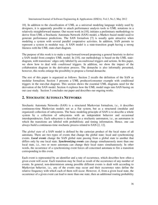 The document discusses a new methodology called UML2SAN aimed at improving software performance engineering (SPE) by generating stochastic automata network (SAN) models from UML specifications. This method allows for more complex UML models to be evaluated for performance during the design phase, reducing potential functionality issues. The paper presents a structured approach to derive SAN from UML, focusing on integrating conditional triggers and illustrates the process with a producer/consumer example.