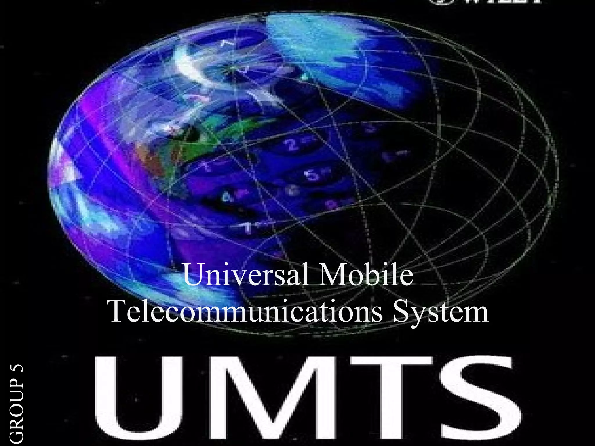 UMTS is a 3G mobile communication standard developed by 3GPP to provide improved speed and capacity over existing 2G and 2.5G networks. UMTS uses W-CDMA as its air interface and is divided into the user equipment (UE), the UTRAN network which includes Node B base stations and RNC controllers, and core network. UMTS supports higher data rates up to 2Mbps, provides seamless international roaming, and enables new multimedia services for businesses and consumers.