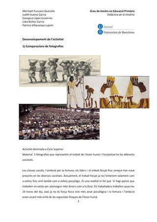 Material: 3 fotografies que representin el treball de l’ésser humà i l’esclavitud en les diferents
