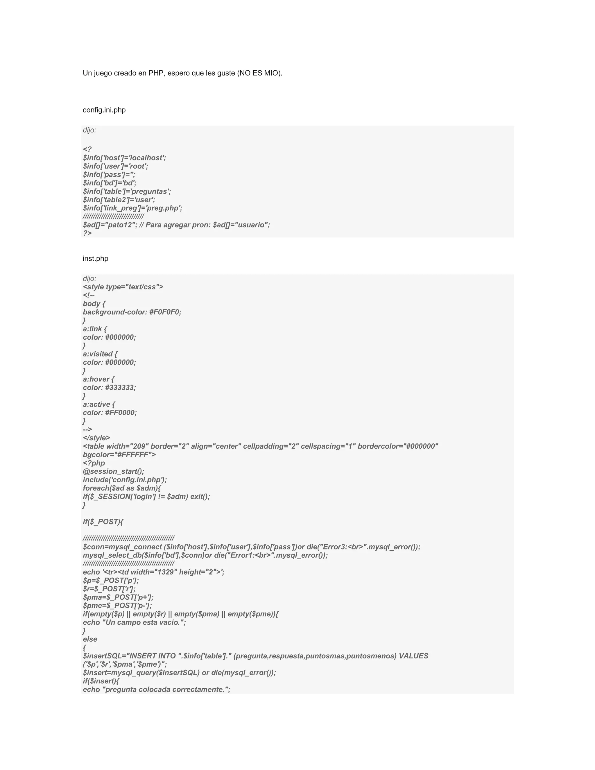 Un juego creado en php 1. Un juego creado en PHP, espero que les guste (NO ES MIO).