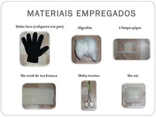 1.Márcanse cun xiz as distintas 2. Énchese cada parte de algodón. As