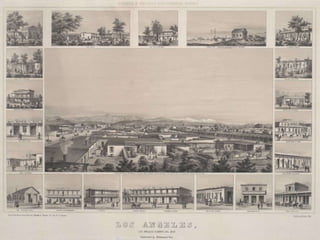 The document discusses Los Angeles' energy history from 1857 to 1957, highlighting the alternative energy technologies that existed even early on but were not fully adopted. It notes that in 1857, human and animal labor as well as wind and sun provided energy, while by 1907 coal, manufactured gas, oil, and natural gas were used alongside other technologies like electric railways and solar hot water heaters. It argues that choices between technologies are often marginal and that both old and new technologies can coexist, providing examples like the debate between wave and airplane technologies in the early 1900s. The document suggests that technological changes result from people and organizations, not an inevitable process, and that the dominance of automobiles over electric railways in Los Angeles resulted