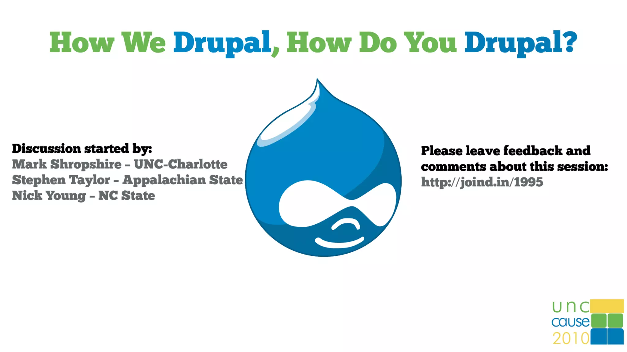 The document outlines the implementation and management of Drupal at UNC Charlotte and Appalachian State University, highlighting their use of Drupal for web content management since 2005. It details the infrastructure, project management, site building, and management processes involved in transitioning to Drupal, including key roles, development practices, and policies to ensure compliance and best practices. The universities have seen benefits such as improved security, consistency, and updated content management through the use of Drupal.