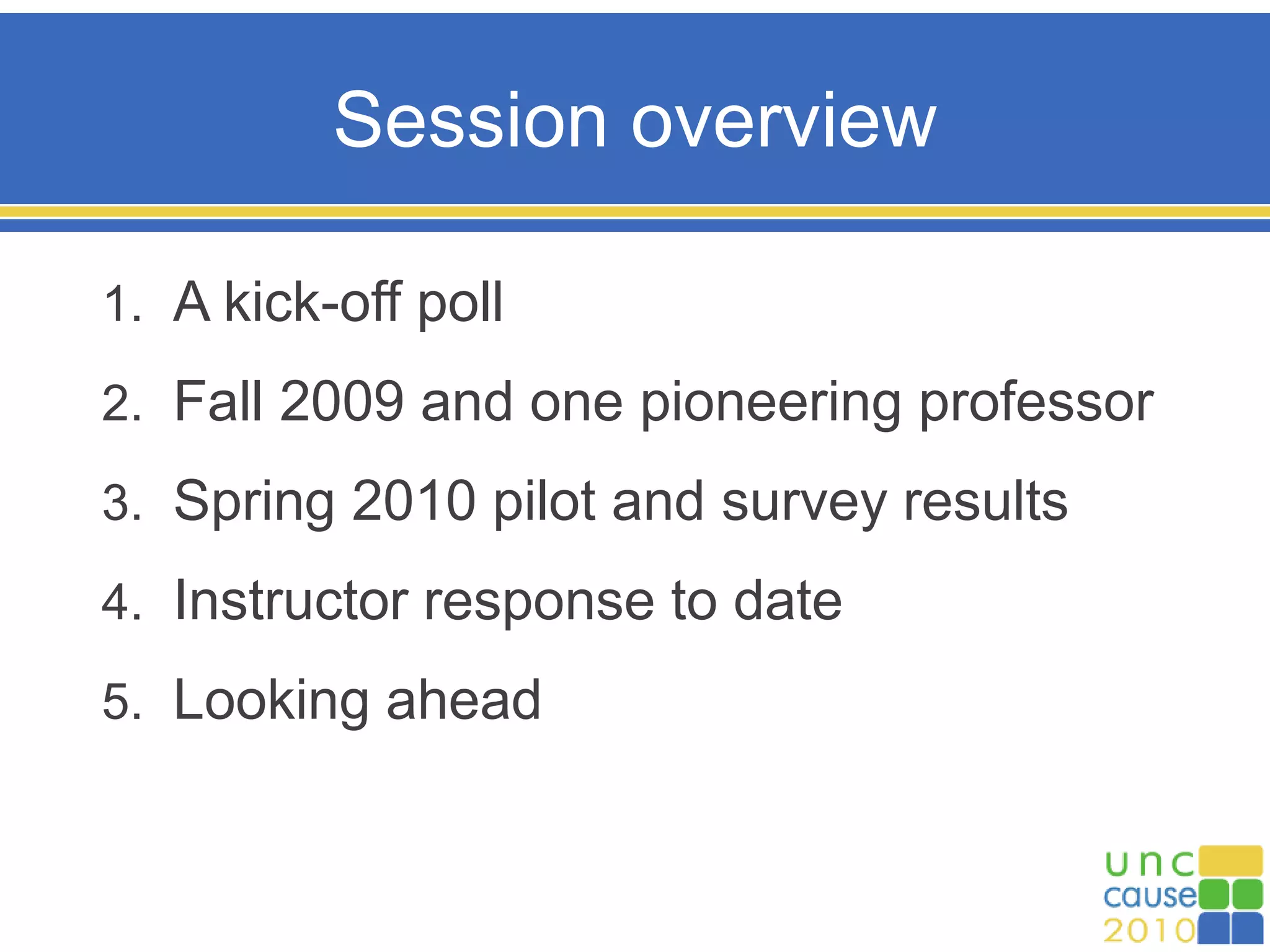 The document discusses a pilot initiative at UNC focused on using Poll Everywhere, a text-based polling system, in large classroom settings. Initial results from the fall 2009 and spring 2010 trials indicated that students were more prepared and engaged in class discussions while instructors reported interest in transitioning from traditional clicker systems. The pilot program revealed various technical and logistical considerations related to device usage and student preferences for interaction in large courses.