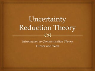 Uncertainty Reduction Theory (URT), developed by Charles Berger and Richard Calabrese in 1975, explains how communication reduces uncertainties between strangers during initial interactions. The theory outlines the processes and assumptions involved in interpersonal communication, including the prediction of behavior, the significance of self-disclosure, and the stages of relationship development. URT emphasizes the importance of communication in managing uncertainty, highlighting the balance between proactive and retroactive techniques for information exchange.