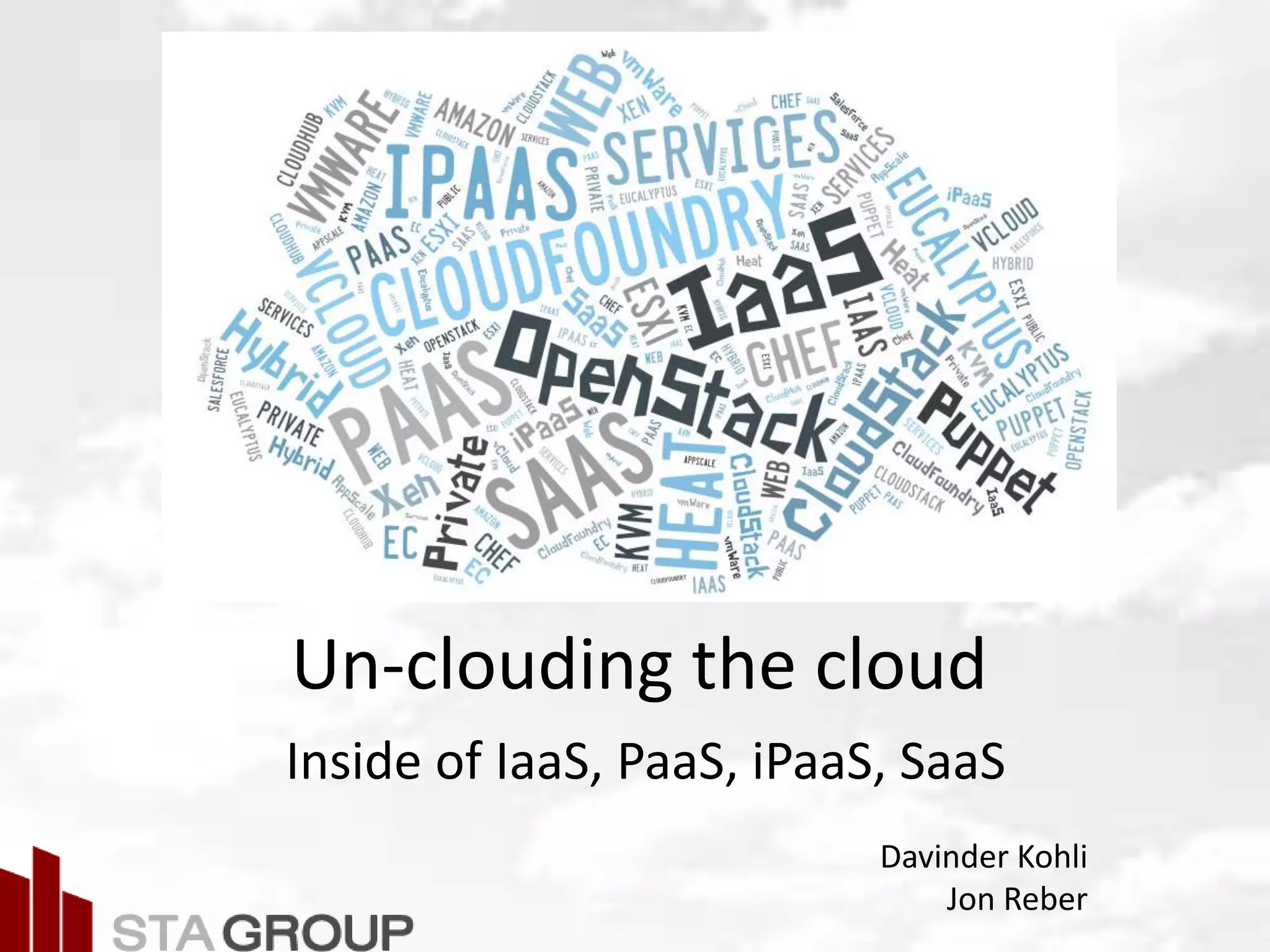 IaaS provides on-demand, self-service access to computing resources like servers and storage. PaaS automates the deployment of applications on top of IaaS and handles scaling. SaaS delivers applications to users through a thin client like a web browser. iPaaS facilitates integration between SaaS, PaaS, IaaS, and on-premise systems through a cloud-based platform. Popular IaaS include OpenStack and VMware vSphere, PaaS include Cloud Foundry and OpenShift, while Salesforce and Office 365 are examples of SaaS.