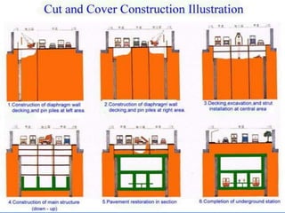The document outlines the various aspects of underground construction, including the reasons for going underground, methods of construction, and the challenges encountered. It highlights the benefits such as reduced urban congestion, the creation of safe spaces, and the use of underground facilities for storage, infrastructure, and research. Risk management strategies and the importance of collaboration between practitioners and researchers are emphasized to mitigate potential issues during underground operations.