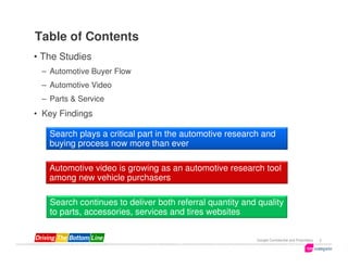 The 2009 study highlights the critical role of the internet and search engines in the automotive buying process, noting that 84% of new vehicle buyers visited OEM or third-party sites before purchase. It indicates that video consumption is also on the rise among vehicle purchasers, with 83% visiting video sites for research purposes. Additionally, the study shows a substantial increase in traffic to sites related to parts, accessories, services, and tires, with search referrals growing significantly as a source for these visits.