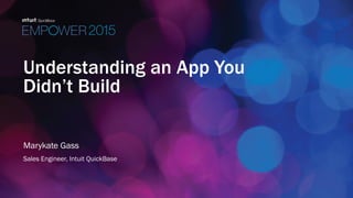 The document provides information about understanding an app that was built by someone else. It discusses the benefits of assessing the app objectively without attachment. It outlines a process for understanding the original design intent, architecture, and how people are using the app. This includes reviewing documentation, interviewing users and the original builder, and examining the table relationships and field usage. It also discusses assessing whether the app meets the current needs and deciding whether to modify the existing app or build a new one. The document stresses the importance of documenting findings and implementing change management to track future modifications.