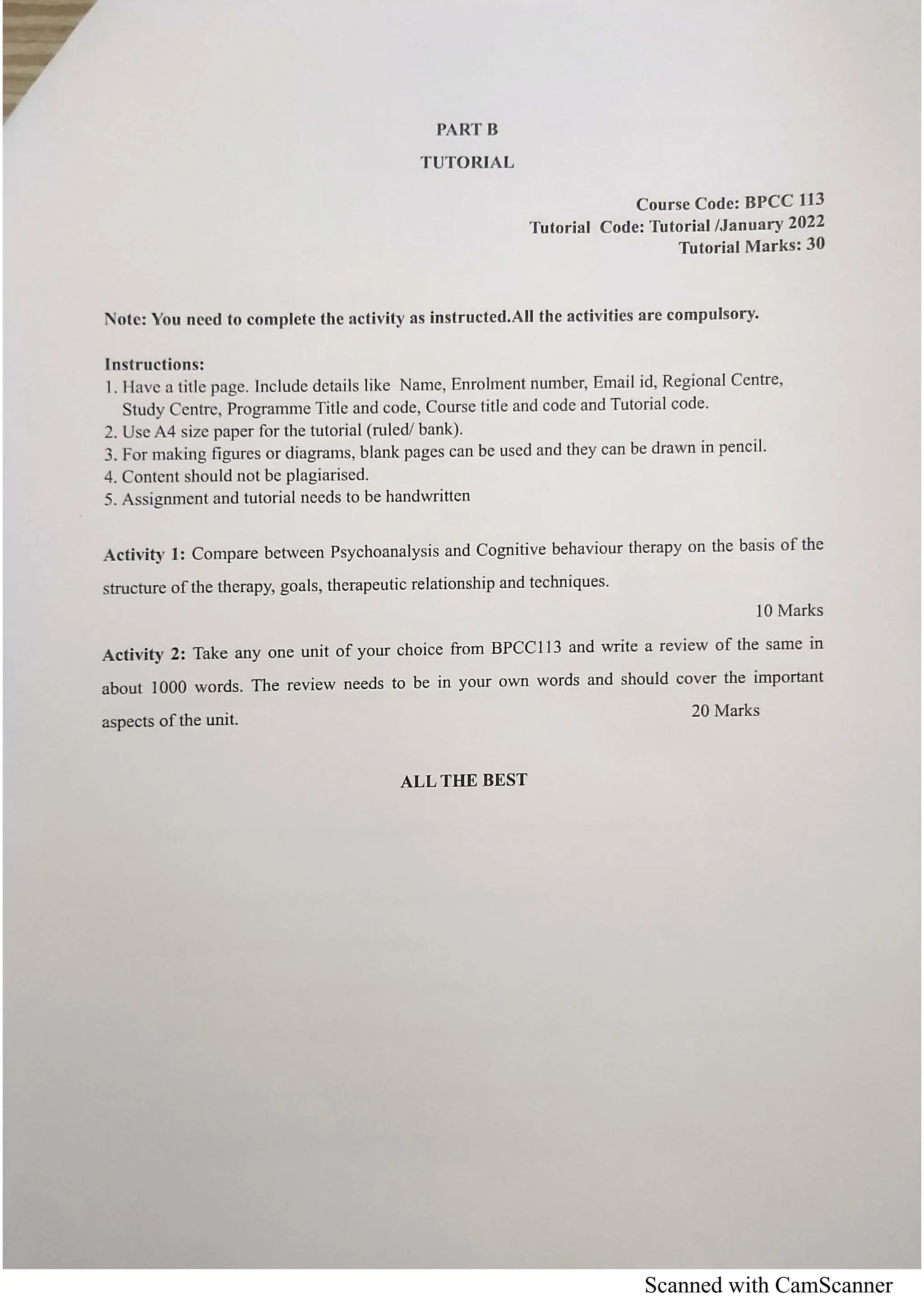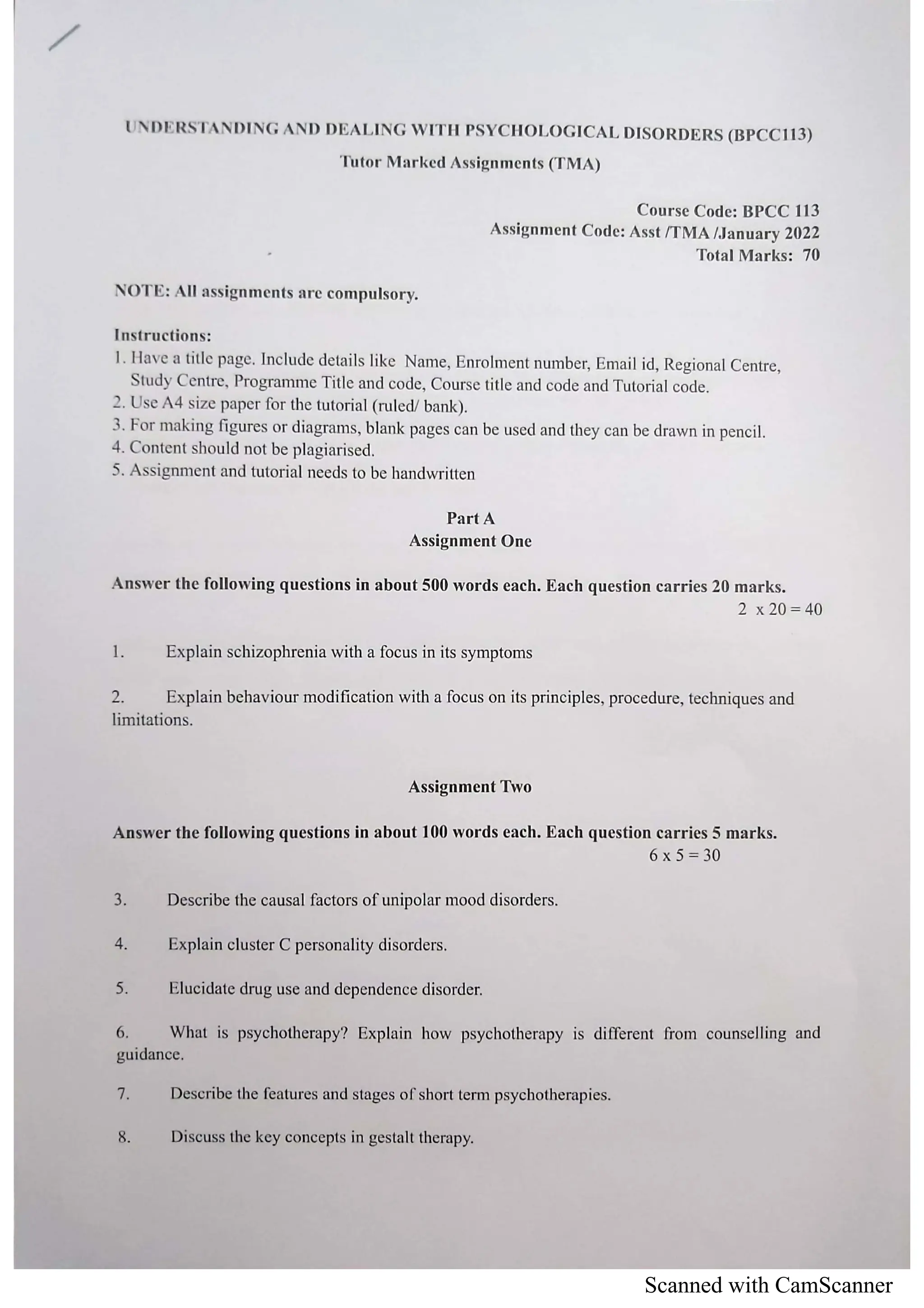 Understanding and Dealing with Psychological Disorders (BPCC 113) - Solved Assignment