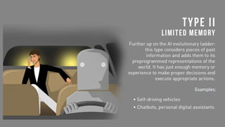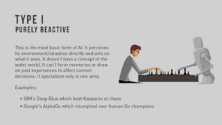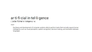 The document discusses the various applications and theories surrounding artificial intelligence, including game playing, speech recognition, natural language understanding, and computer vision. It references notable figures such as John McCarthy and Alan Turing, exploring their contributions and perspectives on AI. Additionally, it outlines potential future developments in AI and interactive educational projects involving simulated historical dialogues.