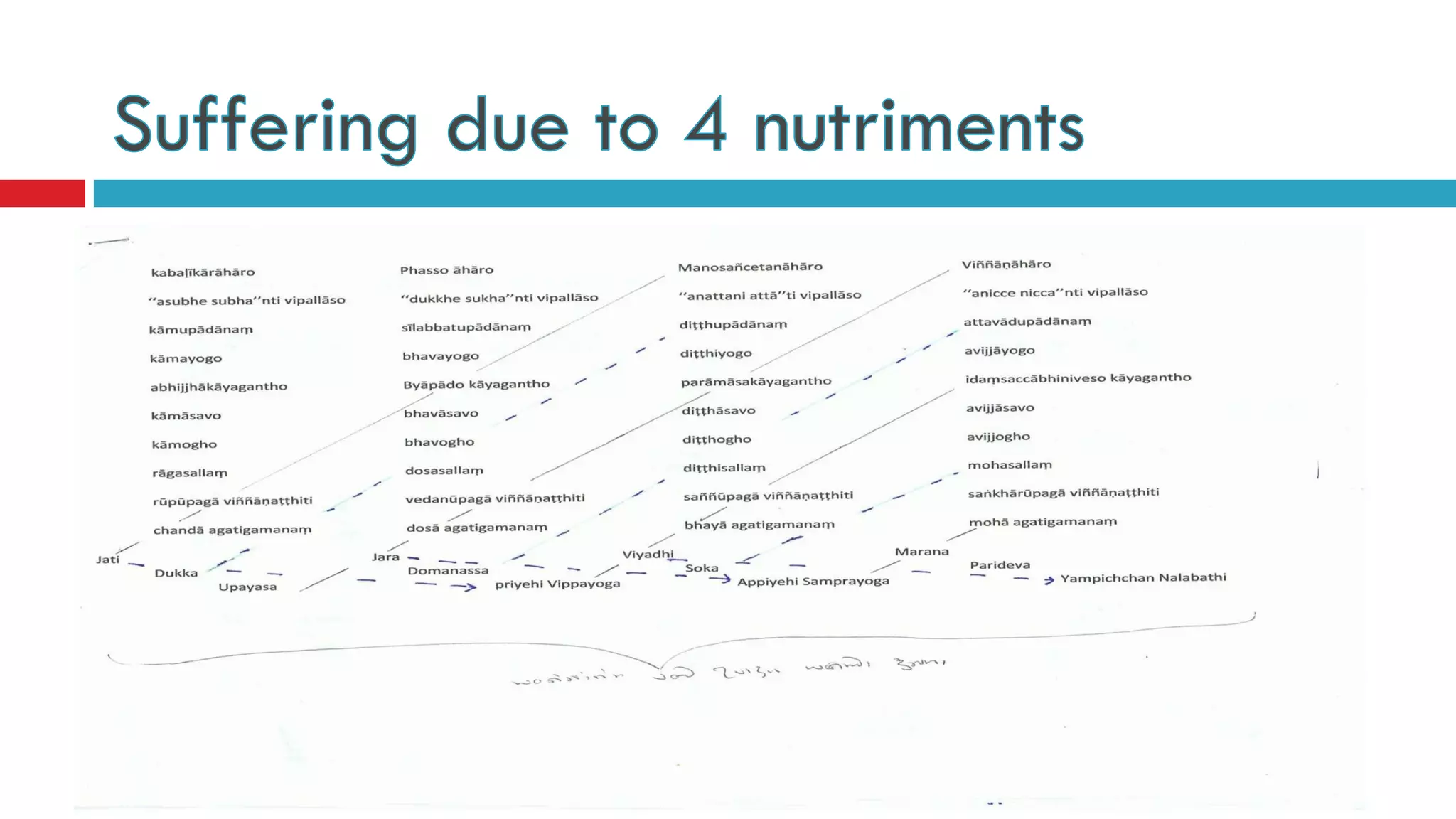 This document discusses the Buddhist concept of samsara, or the continuous cycle of rebirth. It explains that rebirth is driven by craving and attachment, and outlines the six realms where rebirth can occur - heavenly, human, animal, hungry ghost, hell, and demi-god realms. Each realm is associated with particular types of suffering. The document also discusses the four nutriments that sustain the cycle of rebirth - physical food, sense contact, volitional formations, and consciousness. Breaking the attachments that lead to further rebirth is seen as the path to liberation from samsara.