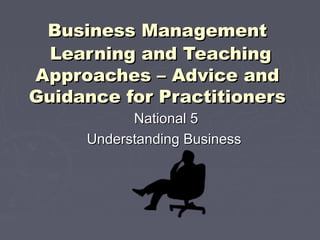 The document provides a comprehensive guide for teaching business management at a national level, focusing on entrepreneurship, business activities, and stakeholders. It outlines suggested learning approaches, including discussions, research, and case studies to deepen understanding of business concepts. Additionally, it emphasizes the role of entrepreneurs and the impact of businesses on society while encouraging learners to explore local business examples and their contributions.