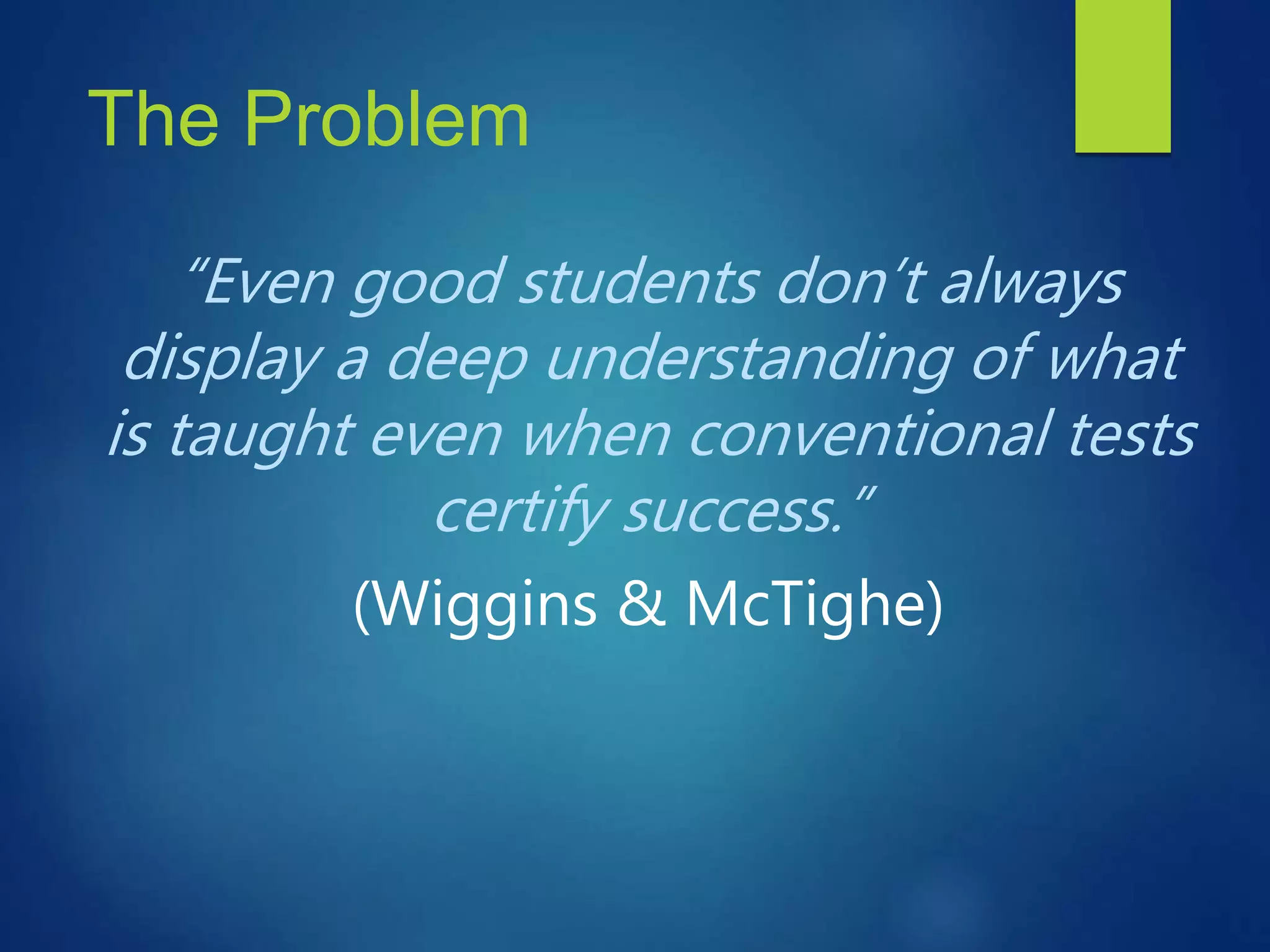This document discusses the backward design model for developing standards-based curriculum. It begins by outlining problems with traditional curriculum design such as students not developing a deep understanding. The backward design process involves 3 stages: 1) Identifying desired results and priorities, 2) Determining acceptable evidence of student understanding, and 3) Planning learning experiences to achieve goals. Key aspects include focusing on enduring understandings, using authentic assessments, and incorporating research-based teaching strategies to promote student understanding. The overall approach emphasizes starting with the end goals in mind and designing curriculum backwards from there.