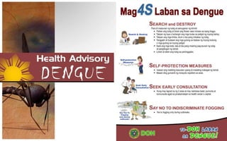 This document provides an overview of dengue fever, including its causes, transmission, global impact, and prevention. Some key points: