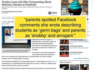 - The development of digital identity, from controlled offline identities to publicly visible and easily shared online identities.