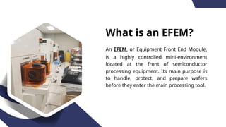 Equipment Front End Modules (EFEMs) are essential components in modern semiconductor manufacturing, responsible for ensuring clean, precise, and automated wafer handling before processing begins. Serving as the controlled interface between wafer carriers and high-tech fabrication tools, EFEMs manage critical steps such as wafer loading, mapping, alignment, and transfer.