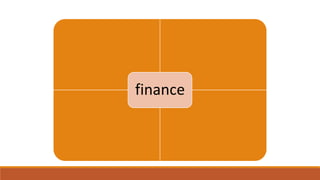 Finance involves the management of money, banking, investments, and credit. It includes private finance like personal and business finance as well as public finance. Business finance has areas like financial management, capital markets, and financial investments. A finance officer's qualifications include knowledge of accounting and economics, understanding of operations and statistics, technical experience, strong communication and relationship skills, and ethical behavior.
