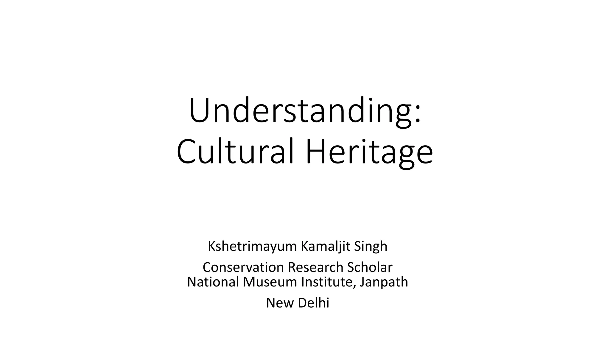 This document discusses cultural heritage and defines it as the creative expression of a people's existence in the past, near past, and present that tells their traditions, beliefs, and achievements. It notes that cultural heritage includes both tangible and intangible forms. Tangible heritage can be physically touched, like monuments and objects, while intangible heritage includes non-physical forms like music, dance, languages, and traditions. The document emphasizes that cultural heritage is important because it conveys identity and values, is unique, can support economic development, and helps people understand cultural diversity.
