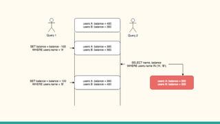 The document outlines various isolation levels in database transactions, including serializable, repeatable read, read committed, and read uncommitted. It discusses the trade-offs between consistency and concurrency for each level and describes how transactions are handled and their visibility to other transactions. The conclusion emphasizes the importance of selecting the appropriate isolation level to prevent data inconsistency.