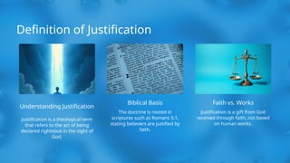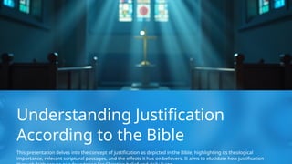 importance, relevant scriptural passages, and the effects it has on believers. It aims to elucidate how justification