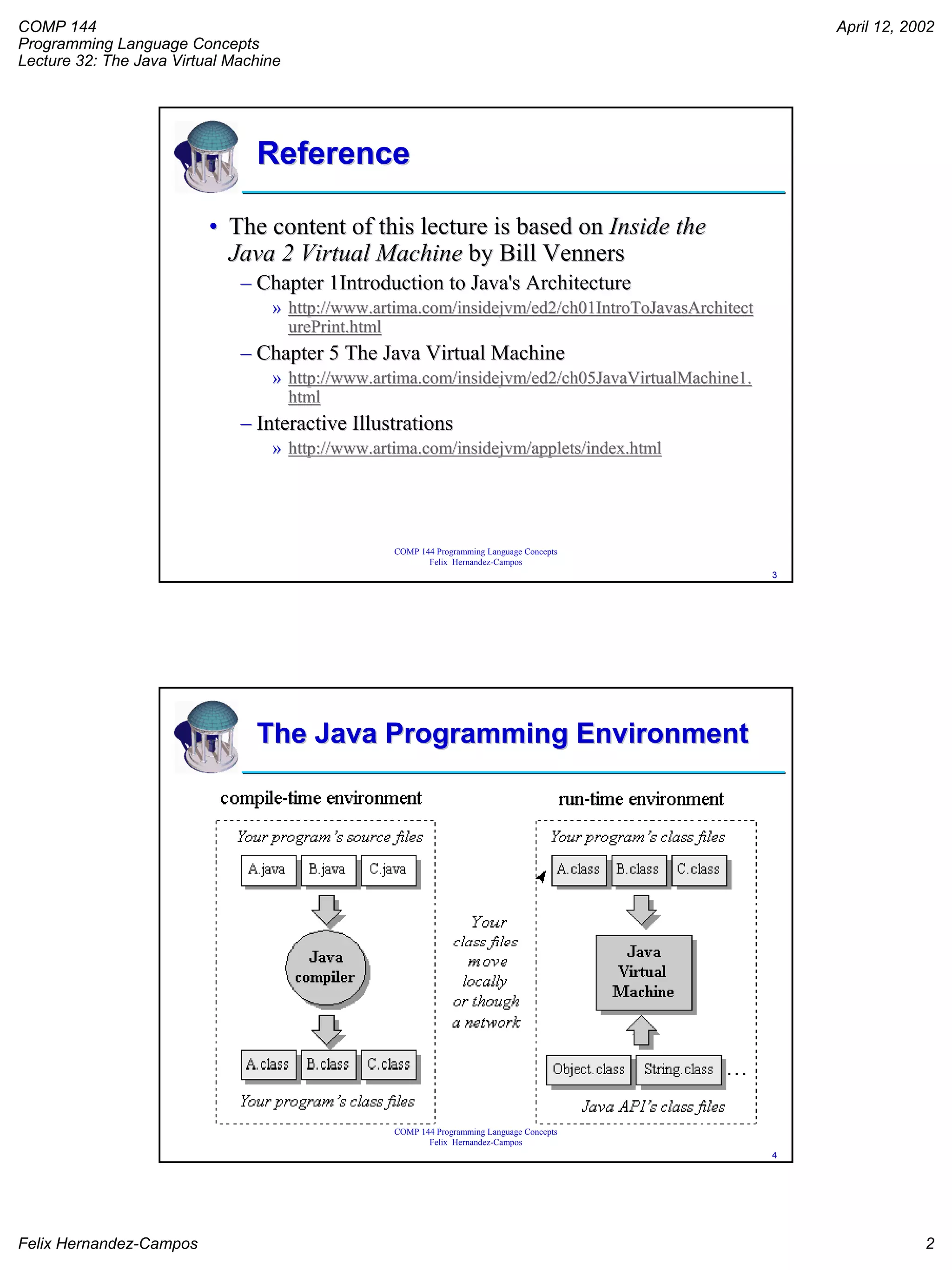 This document summarizes a lecture on the Java Virtual Machine (JVM). It discusses the JVM's role in the Java architecture as an intermediate representation between Java programs and the underlying hardware. It describes key components of the JVM like the execution engine, shared data areas including the stack and heap, and how the JVM executes Java bytecode through interpretation and just-in-time compilation to native machine code. Examples are provided to illustrate how the stack and heap work during program execution.