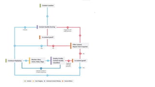 The document explains how the LinkedIn algorithm affects post engagement, detailing that posts are initially tested on a small audience before broader distribution based on response. It outlines classifications of posts (high quality, low quality, spam) and emphasizes the importance of avoiding spam indicators like excessive tagging and frequent posting. Techniques to enhance engagement include tagging relevant individuals, responding to their posts before or after publishing, maintaining a dedicated follower group, and focusing on high-quality content aligned with trending topics.