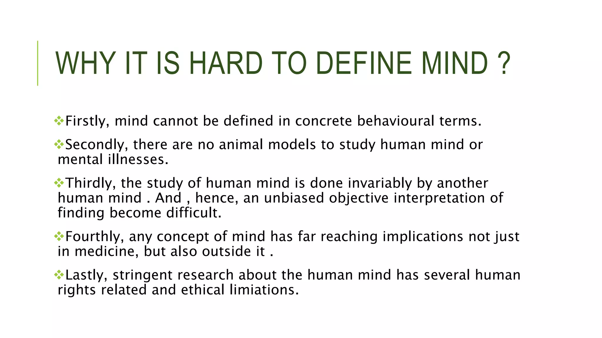 The document explores the complexities of defining the mind, highlighting the abstract nature of the mind compared to the physical brain. It discusses the interdependent relationship between mind and body, particularly how psychological processes can influence physical health as seen in psychoneuroimmunology. Various examples illustrate these concepts, including instances of mind-body connections in athletes and those with brain injuries.