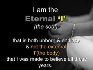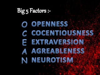 The document discusses self-identity and how people can understand themselves better through a model of four panes - open, blind, hidden, and unknown - which represent different levels of self-knowledge and knowledge others have of them. It then defines several components of self-identity, including self-concept, confidence, and self-esteem. Finally, it discusses the big five personality traits - openness, conscientiousness, extraversion, agreeableness, and neuroticism - and provides examples of each. The overall message is that understanding these dimensions can provide insight into oneself and one's relationships with others.