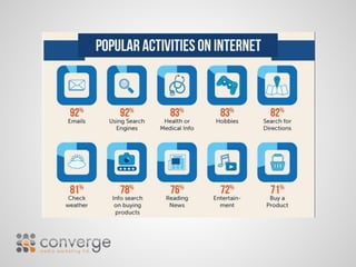 This document provides an overview of search engine optimization (SEO) fundamentals. It discusses how search engines work by crawling the web, indexing content, and providing search results. It also outlines the 7 key factors for effective SEO, including on-page elements like title tags, URLs, and headings, as well as off-page elements like quality content, endorsements, design, and measurement. The document emphasizes that SEO is an ongoing process that requires constant optimization and measurement of results.