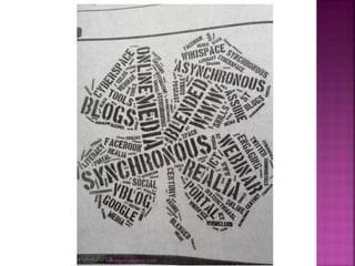 The document defines key terms related to technology in education including technology, information and communication technology literacy, educational technology, digital literacy, digital learning, and instructional technology. It provides examples of tools that can be used for digital learning like Skype, Canary Learning, iBooks, and KA LITE. The terms also cover concepts like the internet, world wide web, web access, webquests, blogs, wikis, flipped classrooms, podcasts, Google apps, vlogs, and social media. Productivity tools, technology tools, and voice over internet protocol are also defined.