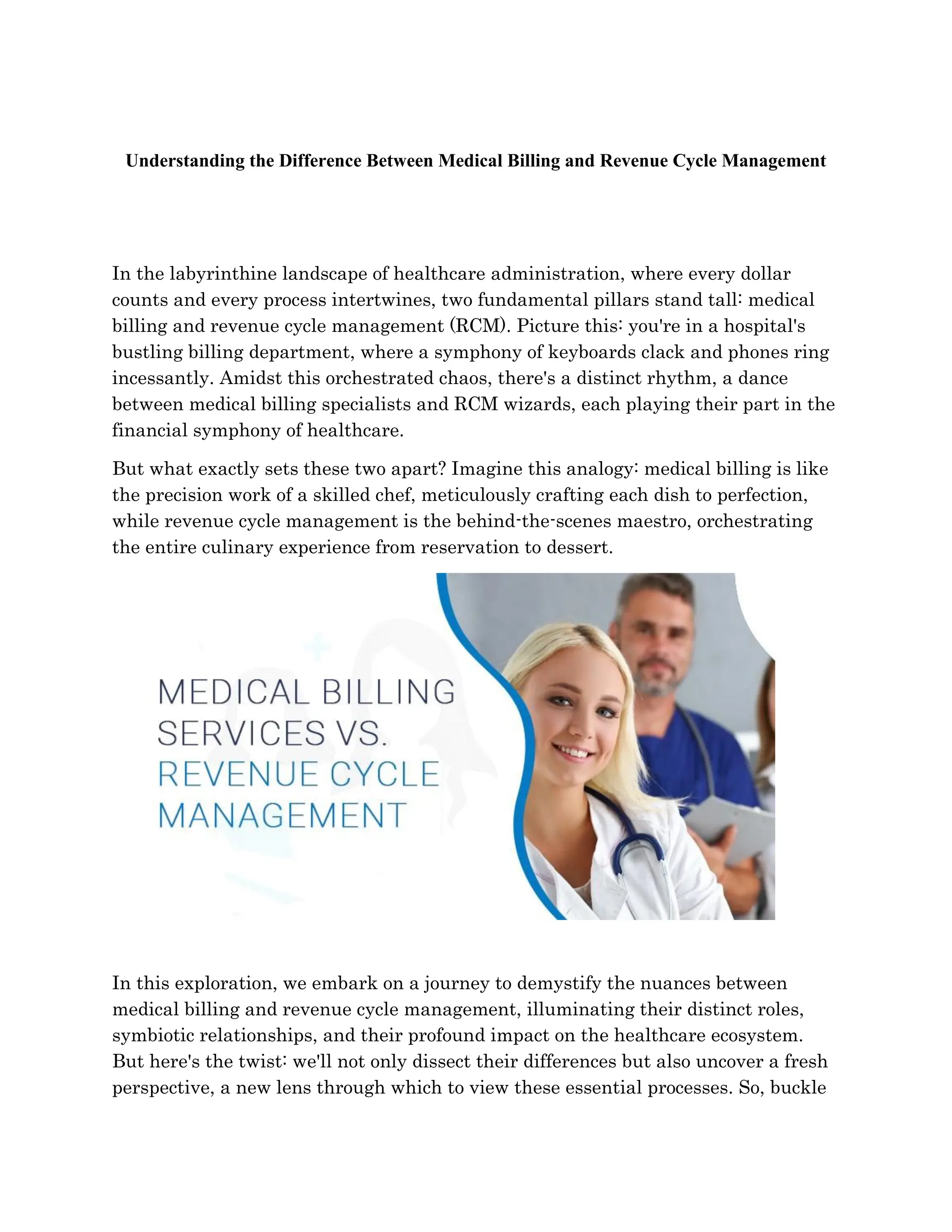 Medical billing and revenue cycle management (RCM) are vital yet distinct elements within healthcare finance, with medical billing focused on claims processing while RCM encompasses broader financial optimization functions. Each process plays a critical role in ensuring accurate reimbursements and enhancing revenue generation, highlighting their interdependent relationships. Understanding their differences is essential for healthcare organizations to improve financial performance and sustainability.