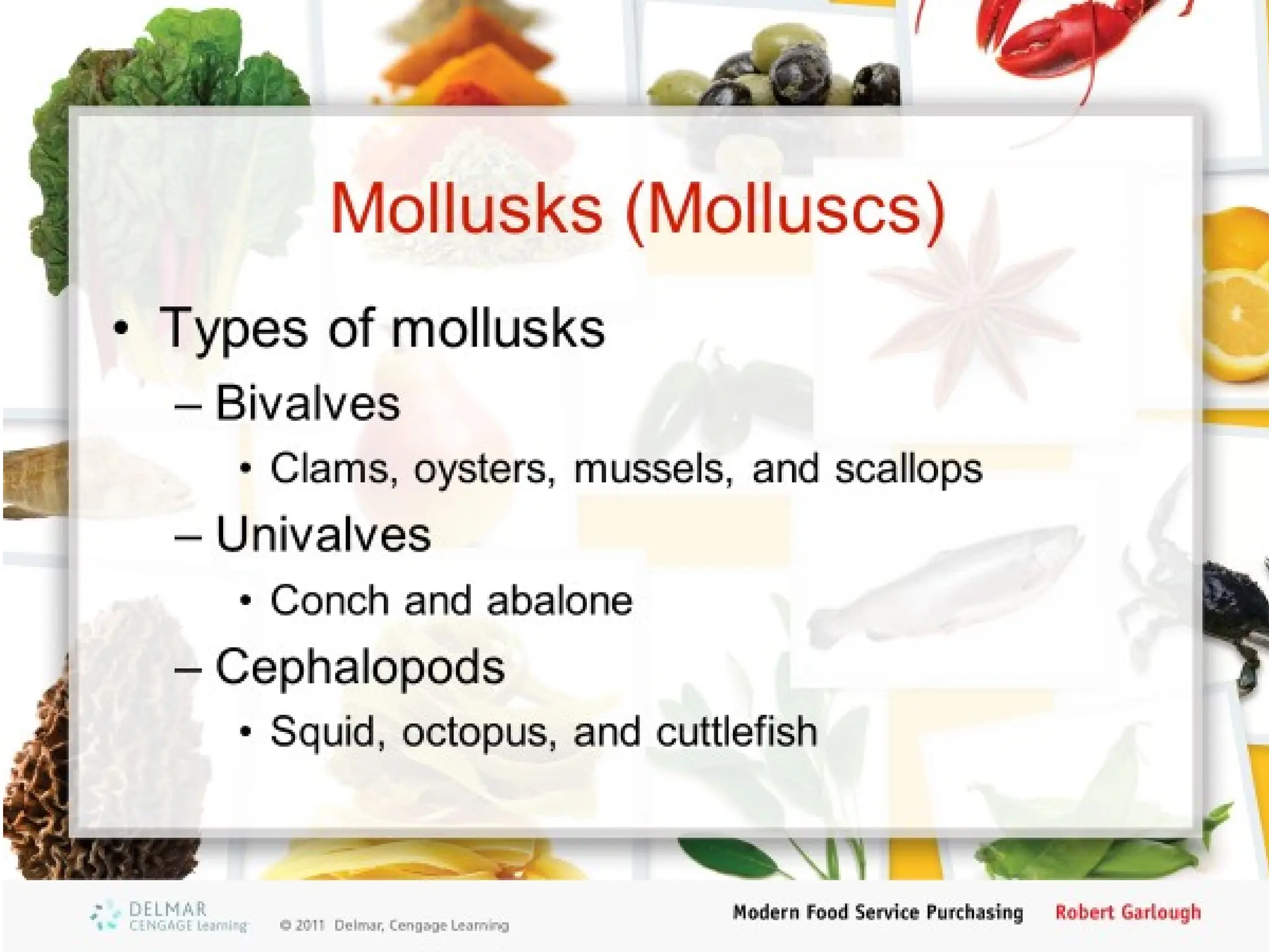 The document lists various types of shellfish including slipper lobster, langoustine, lobster, and spiny lobster. These seafood varieties are known for their differences in habitat and culinary uses. The focus appears to be on crustaceans and their classifications.